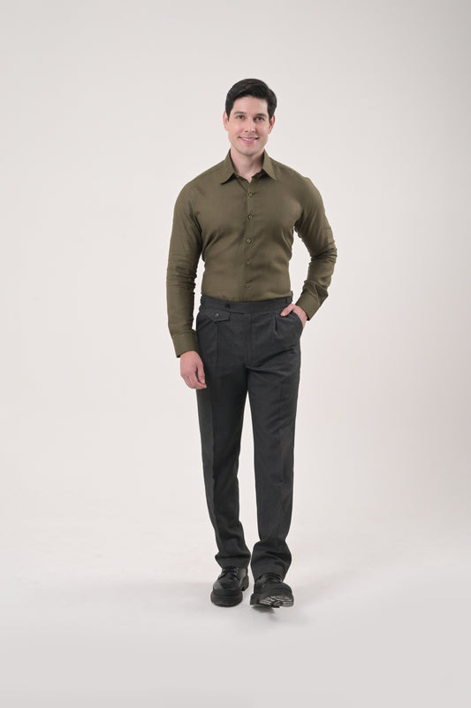 Grey Tailored Top with Brown Pleated Mini Skirt