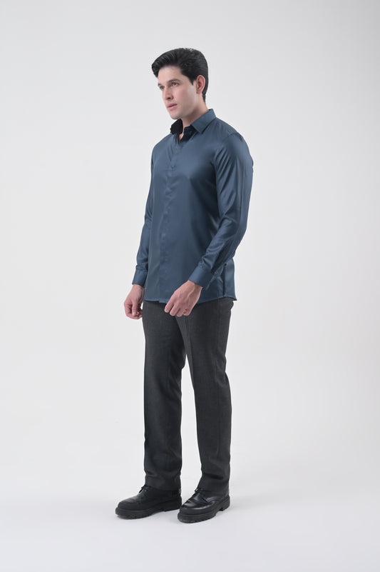 Silk Cotton Blend Shirt Teal Blue