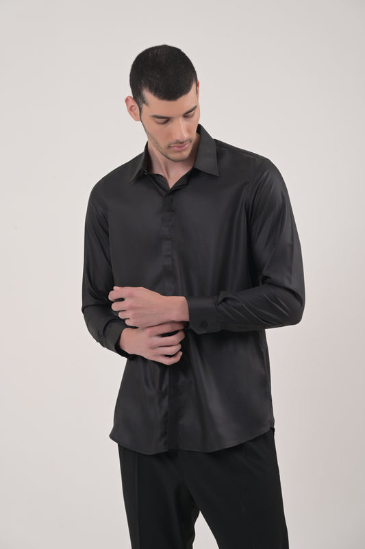 50% OFFSilk Cotton Blend Shirt Black