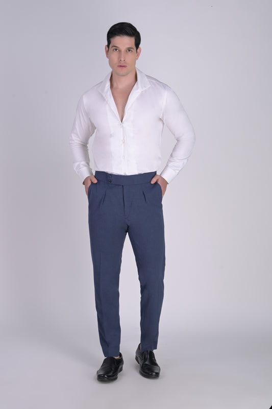 50% OFFBlue Textured Trousers